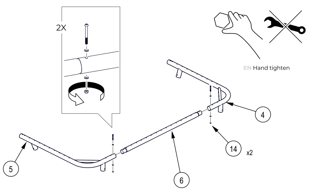 - TIGHTEN all the bolts that have been hand tightened in the previous steps.