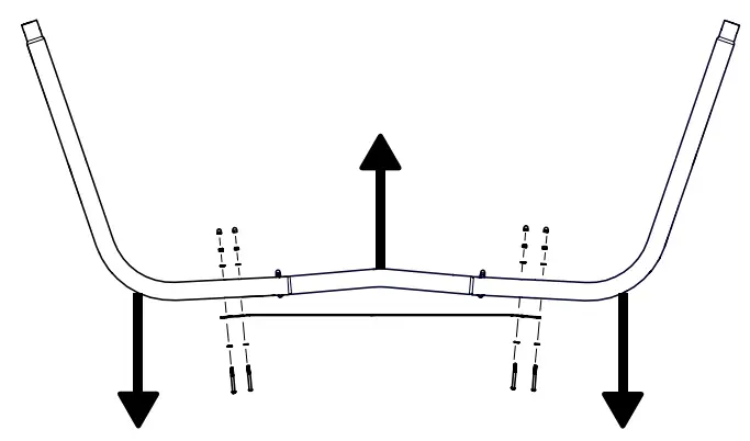- Install one outer bolt first, and only barely hand tighten the nut. Then, install the outer bolt in the opposite end-it may help if you bow the steel plate slightly to better align the bolt holes. Also squeezing/ bending the mid leg assembly by pulling/ pushing in the directions shown in figure below may help. One way to do that is to turn the leg assembly upside down against the ground (on a soft surface) and press down from the center. Hand tighten only.