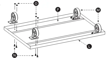 and flange nuts (O). Casters are now fully attached to the dolly. Tighten all bolts securely. Assembly is complete. |