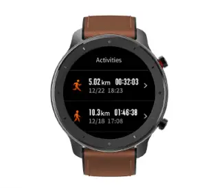 Amazfit GTR supports twelve workout types: Outdoor running, Walking, Outdoor cycling, Treadmill, Indoor cycling, Pool swim, Open water swim, Elliptical trainer, Climb, Trail run, Sk iing,