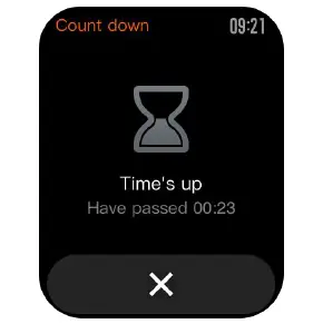 You can suspend, resume or stop the countdown function anytime when it operates. When time’s up, the watch will vibrate to remind you. You can close the countdown function by tapping the “×” button at the bottom.