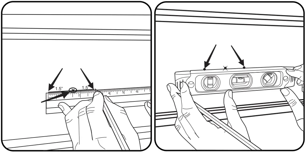Step 2: Measure two opposing marks that extend half the distance of your handle hole centers. For example, if your handle has a 3-inch hole center, mark two points that are 1.5 inches in either direction. Use a level to ensure that your marked locations are straight.