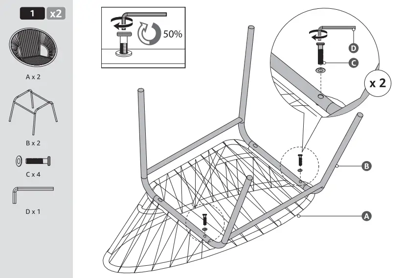 Always install screws to the round screw holes first, then to the oval screw holes.