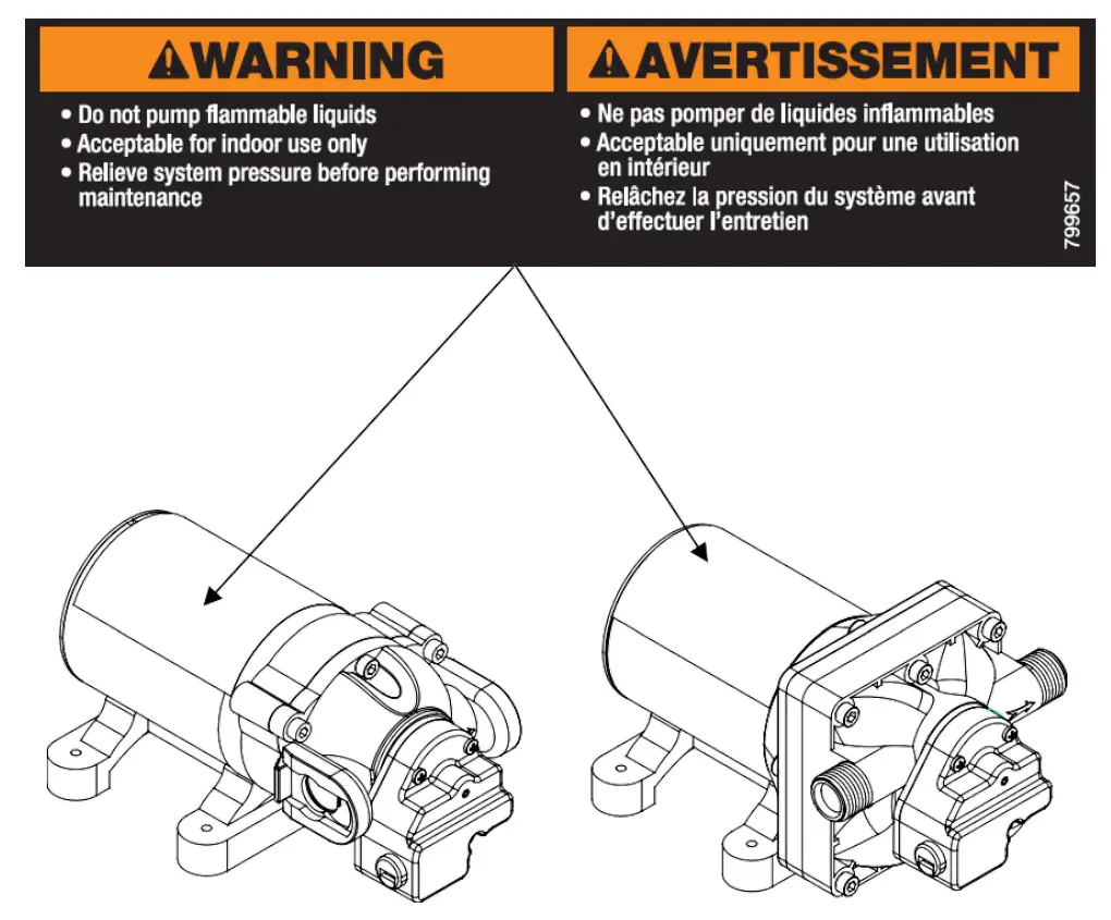 - READ and FOLLOW instructions and warnings in the RV water pump manual.