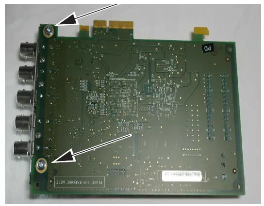 Figure 14. Underside of MADI-192 card showing fasteners to remove - Using a #2 Phillips screwdriver, remove the two screws secure the faceplate to the card. Keep the screws nearby to secure the new faceplate.
