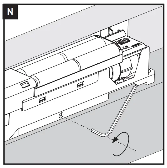 If the closing unit has been configured too tightly, you must turn the adjustment screw to the left (figure O ). Press the close button on the remote control once again and check whether the closing unit closes properly. Repeat this process until the unit closes properly.