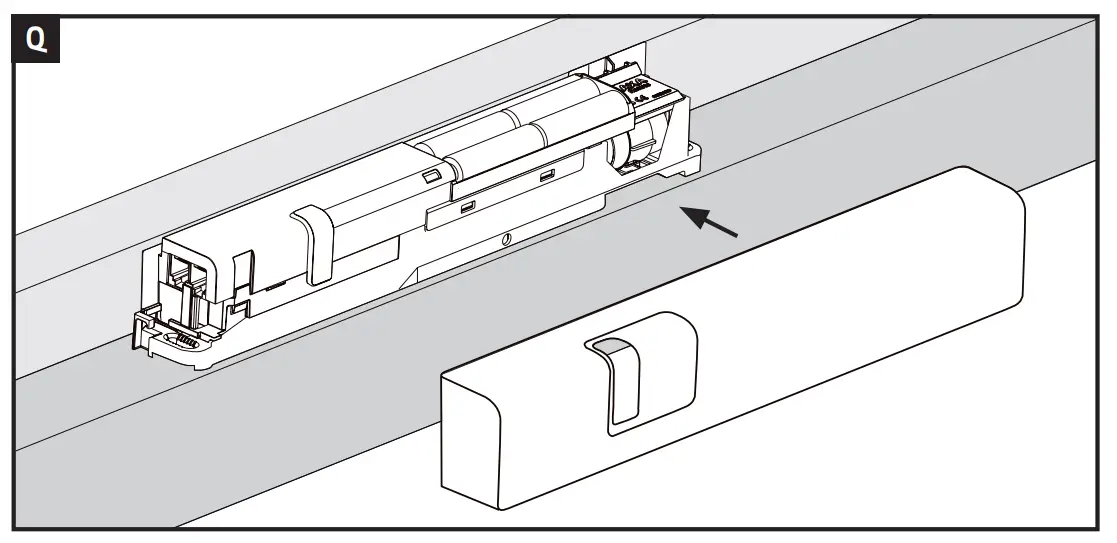 Assembly cover: - Slide the cover on to the closing unit, from front to back, until it goes no further (figure Q ).