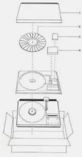 NOTE: Keep the original packing and this instruction for use at a later transport. Unnecessary da mage may be done to the record player if it is sent without being correctly secured and packed.