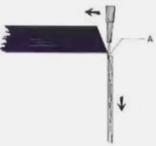 9. Put chamis deck B dia- gonally down; the mil led edge (see sketch) should face left, towards C, and be pushed in be low the spring bar.