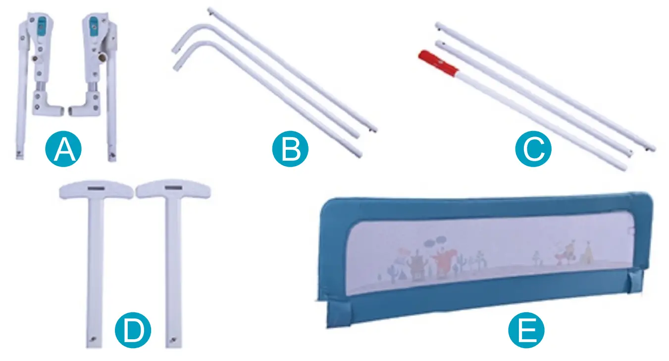 WARNING: Do not use the safety bed rail unless all the components are correctly fitted and adjusted.