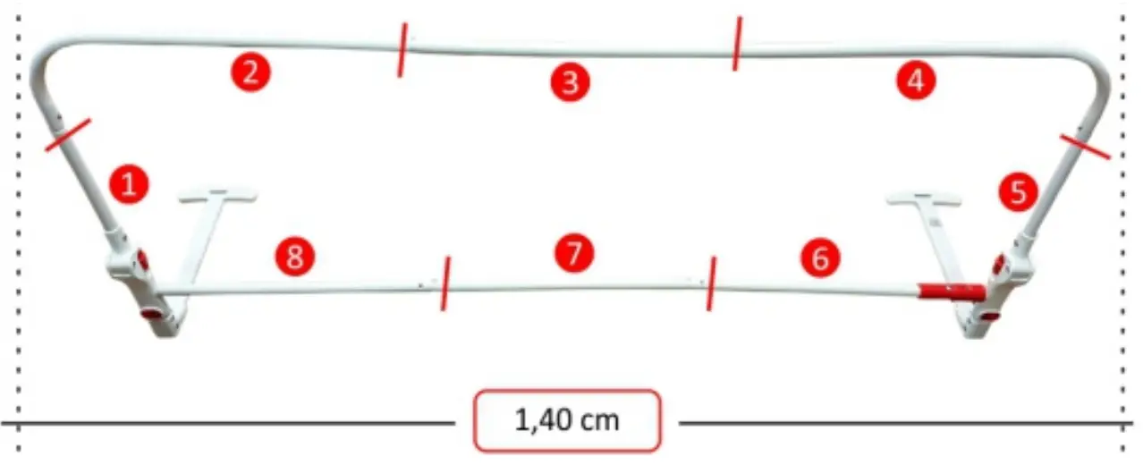 WARNING: The fixing, fitting and adjustment operations of the bed rail must only be carried out by an adult.