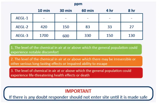 Ambient alarm thresholds are pre-set as per Acute Exposure Guideline Levels (AEGL’s)12: