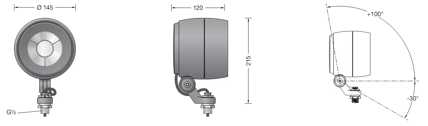 Performance floodlight with G½ mounting bush.