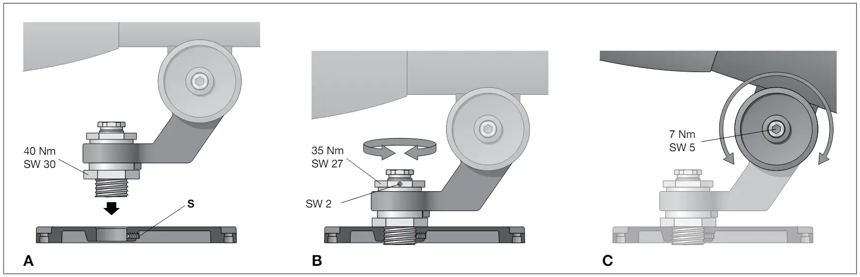 Hexagon socket screw = 7 Nm