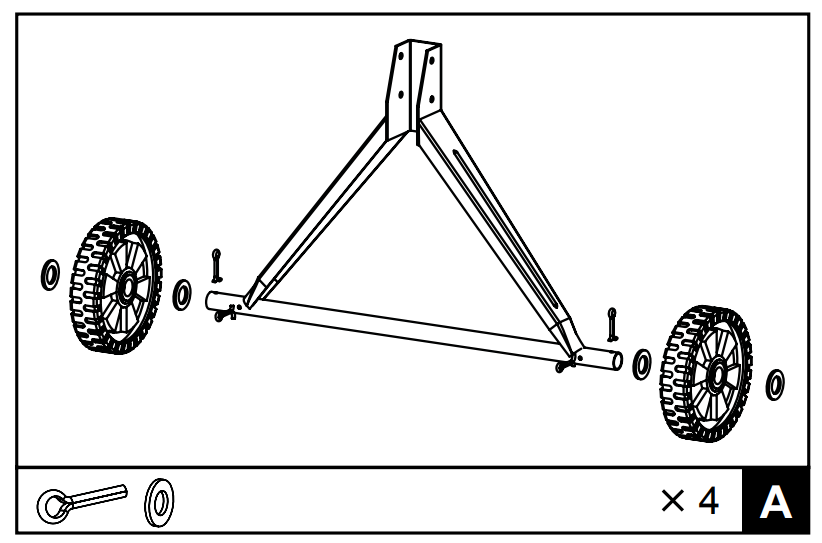 - Turn the frame over and attach the axle bracket with wheels in the same manner.