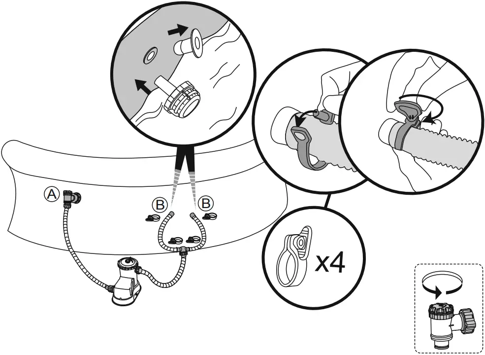 Carefully read, understand, and follow all information in this user manual before installing and using the Filter Pump. These warnings, instructions, and safety guidelines address some common risks of water filtration systems, but they cannot cover all risks and dangers in all cases. Always use caution, common sense, and good judgment when enjoying any water activity. Retain this information for future use. In addition, the following information can be supplied depending on the Filter Pump type. Keep the instructions in a safe place. If instruction is missing, search it on the website : www.bestwayusa.com//support.