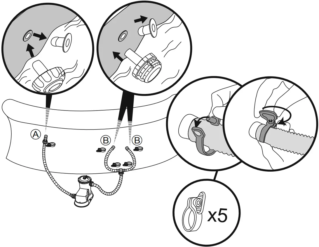 - Remove all accessories; be sure that Filter Pump, hoses and debris screens are completely clean and dry before the storage.