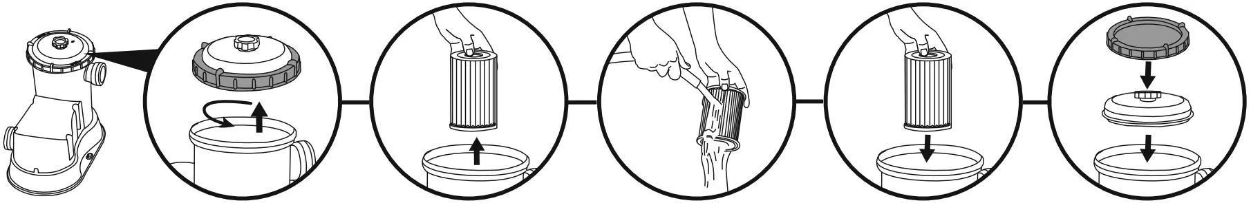 only. May not reflect actual product. Not to scale. - To optimize the Filter Pump performance and for sanitary reasons, we suggest replacing the filter cartridge with a new one every two weeks