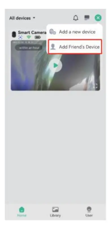 - For users who need to be shared with, click “+” on the homepage and select “Add Friend’s Device” to enter the scan code page.