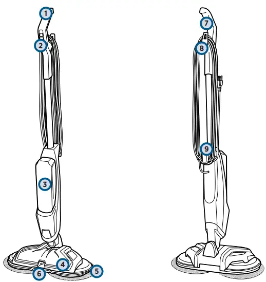 - Do not store machine on wet mop pads as they may damage wood or other delicate floors.