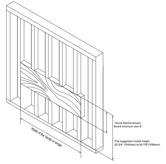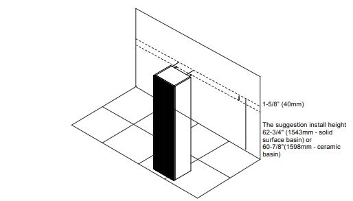 The height of Leveling Bracket InstallatOn is 59-3/8″ (IS08mm – Wlid sudace basin) or – ceramic basin) - STEP 2. Leveling bracket installation Install bracket after determining the height of vanity.