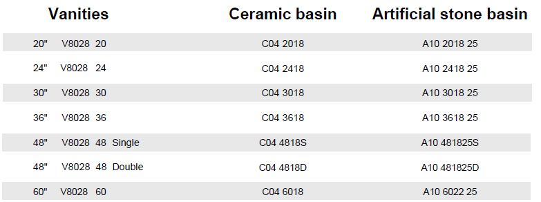 The suggestion height of vanity installation is 30-5/8″ (780mm) for Resin Basin or 32-5/8″ (830mm) for Ceramic Basin – not including the basin.
