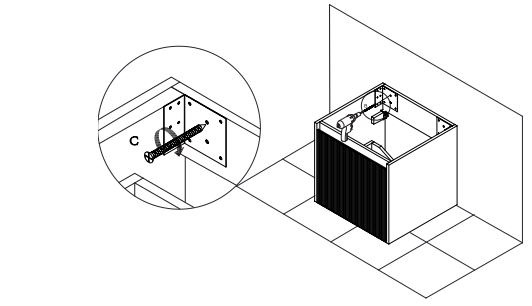 Place the vanity on the leveling bracket. The leveling brackets are only for leveling the vanity and are not designed for permanent support. The vanity needs to be secured into the wood reinforcement board through the corner metal brackets. - Fixed Cabinet