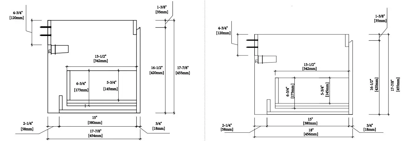 The suggested height without the sink is 33-1/2″ (850mm) to 35-1/4″ (895mm). If an alternate height is desired, adjust the rough-in and backing material heights using the dimensionsprovided. - Cabinet Positioning and Installation