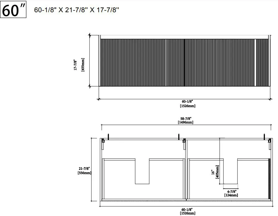 - 60″ 62-1/4 48-7/8″ x 19-5/8″