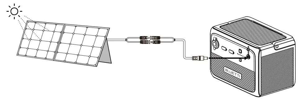 Connect the solar panels (in series or parallel) to B80 via the solar charging cable.
