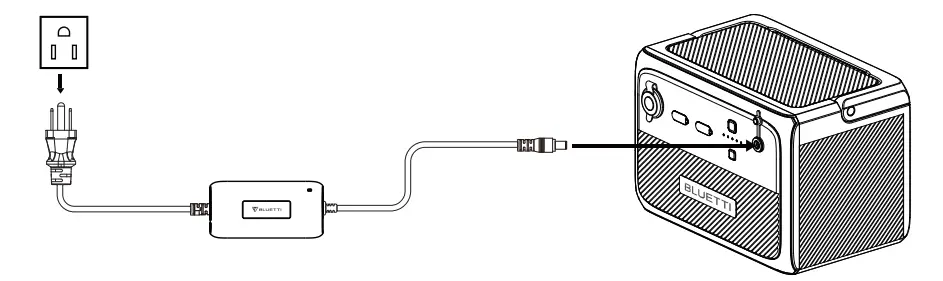 Connect the AC60 and B80 and plug the AC60 into a wall outlet via the AC charging cable. The AC60 will automatically charge the B80