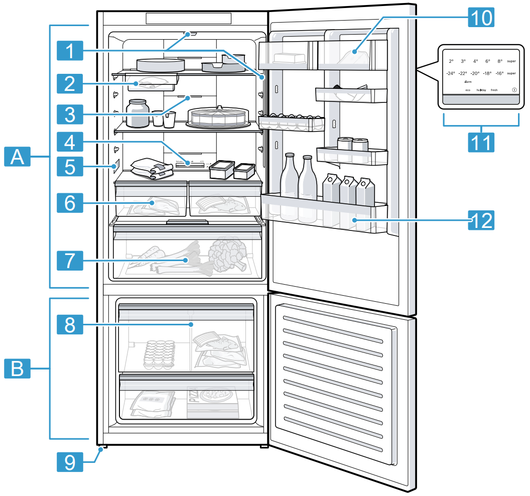 - If the door is open for an extended period of time, this may lead to a considerable temperature increase in the compartments of the appliance.