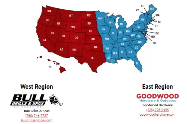 - For the western region, please call Bull Grills & Spas at (760)746-7727