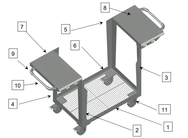 - Before attempting to assemble your grill cart, check that all the necessary parts are included by using the illustrated parts