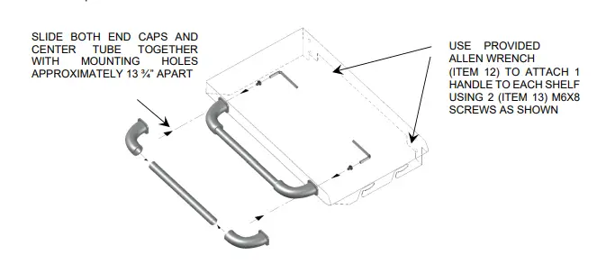 - Per illustration below, combine the handle tube and end caps and then install the handle end caps onto the side