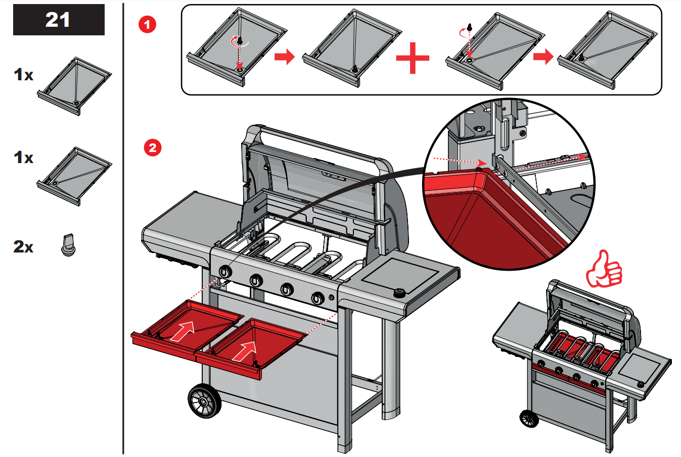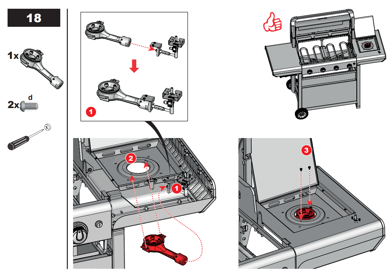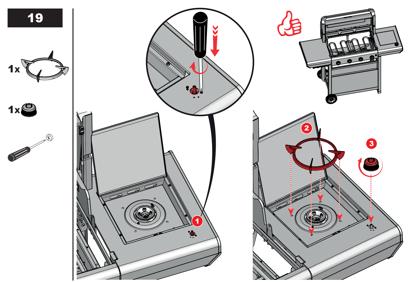 Home » CAMPINGAZ » CAMPINGAZ 4010067965 Gas BBQ Grill Instruction Manual CAMPINGAZ 4010067965 Gas BBQ Grill Contents BOX CONTENTSPARTSASSEMBLY INSTRUCTIONS BOX CONTENTS PARTS Put all screws and nuts in place without tightening. Tighten the screws and nuts. ASSEMBLY INSTRUCTIONS Related Manuals LANDMANN TRITON 2.0 Gas BBQ Grill Instruction Manual morphyrichard MRGP24SS Benchtop Electric BBQ Grill Instruction Manual GEORGE FOREMAN 22460 Indoor Outdoor BBQ Grill Instruction Manual
