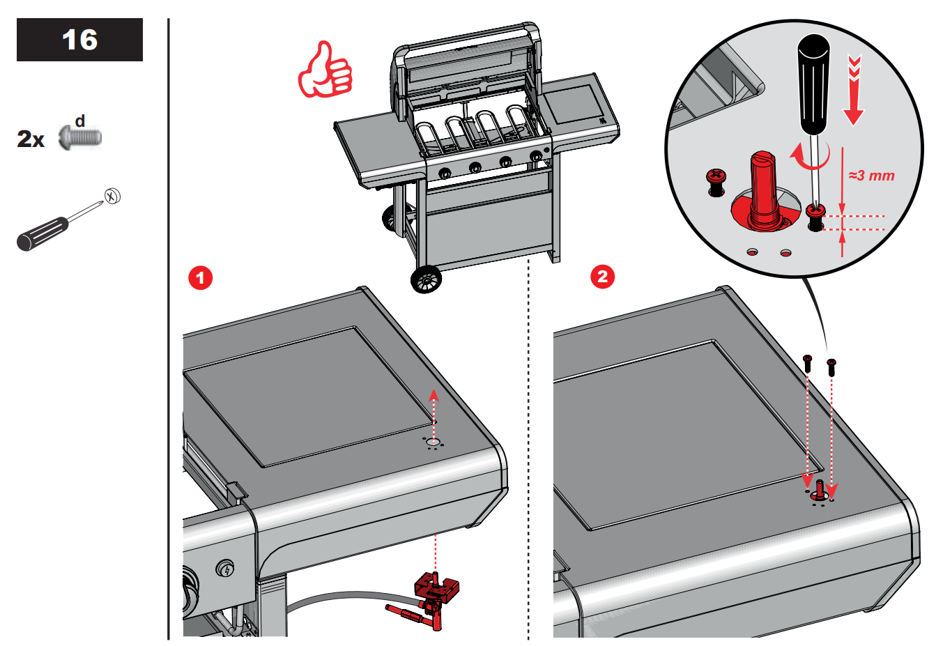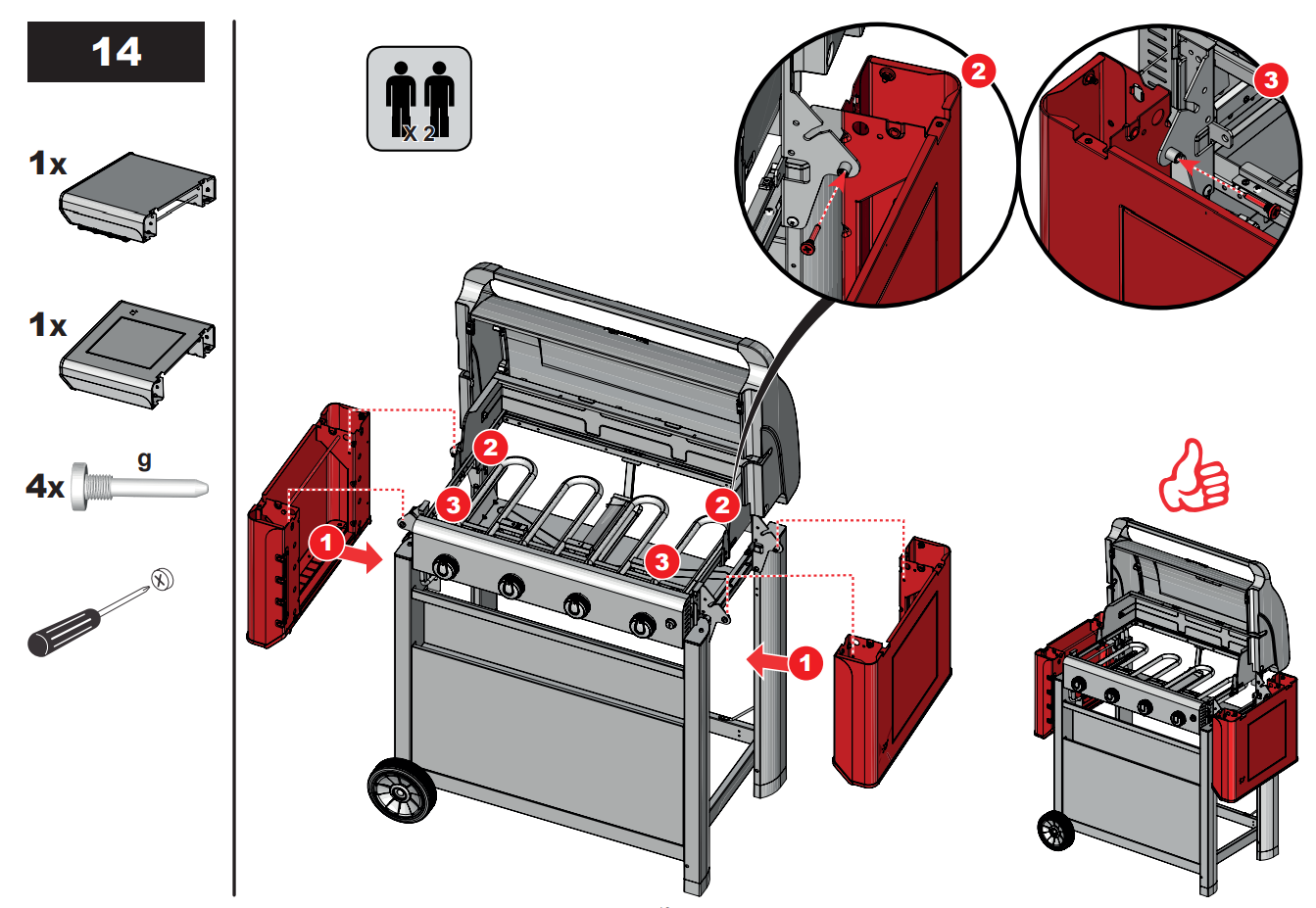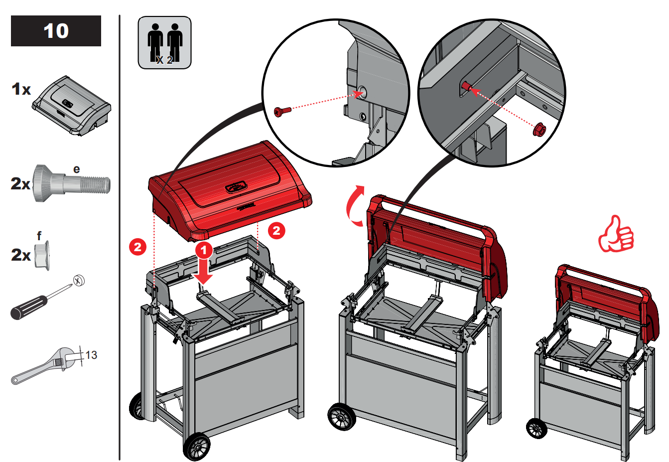 Home » CAMPINGAZ » CAMPINGAZ 4010067965 Gas BBQ Grill Instruction Manual CAMPINGAZ 4010067965 Gas BBQ Grill Contents BOX CONTENTSPARTSASSEMBLY INSTRUCTIONS BOX CONTENTS PARTS Put all screws and nuts in place without tightening. Tighten the screws and nuts. ASSEMBLY INSTRUCTIONS Related Manuals LANDMANN TRITON 2.0 Gas BBQ Grill Instruction Manual morphyrichard MRGP24SS Benchtop Electric BBQ Grill Instruction Manual GEORGE FOREMAN 22460 Indoor Outdoor BBQ Grill Instruction Manual