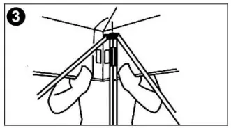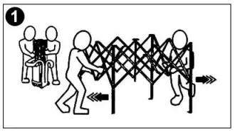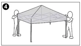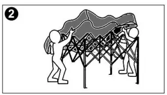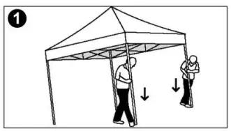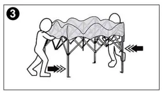 - After taking everything out of the carry bag, Place the gazebo frame in the center of the area to be sheltered. Stand on opposite sides, grasp outer legs, lift off the ground and pull out, and be careful not to pinch fingers.