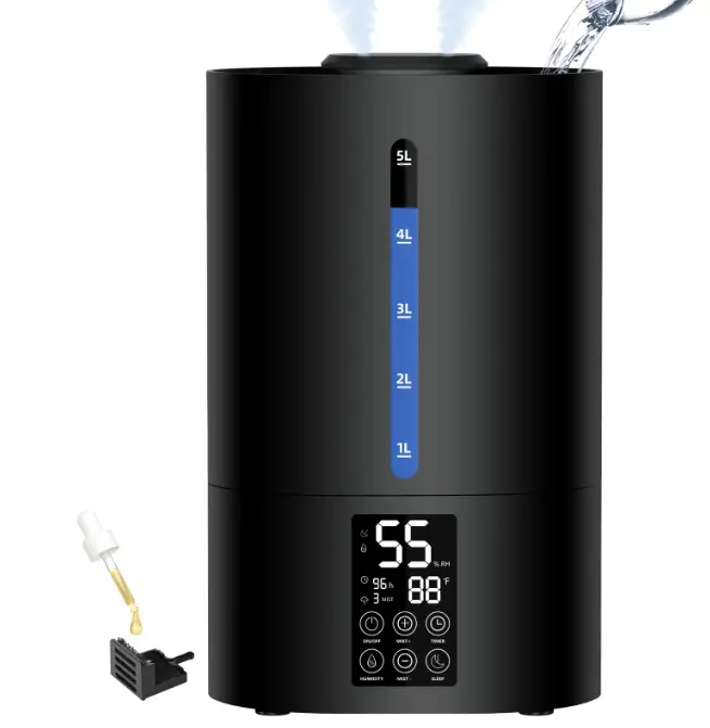 1. The 6L humidifier has a cool and warm mist function. Touch the warm mist key on the screen to start the humidifier’s warm mist function, 25 minutes after the mist becomes warm mist, the normal state of the cold mist mode.
