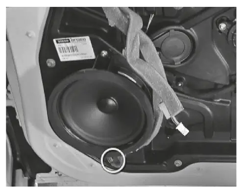 Connect the speaker harness. Start the assembly of the door panel. Reconnect all wires harness.