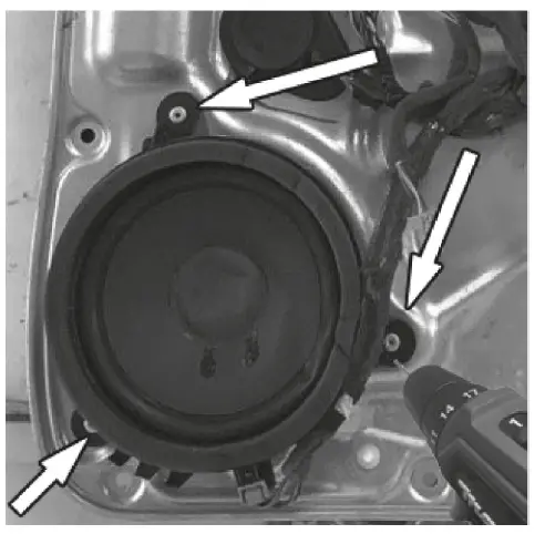 • The door speakers are either fixed with rivets or screws. Make sure you have correct tools for each operation.