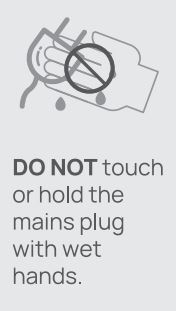 - Always unplug before cleaning or leaving the appliance unused for a long period of time. Keep your hands dry when plugging/unplugging.