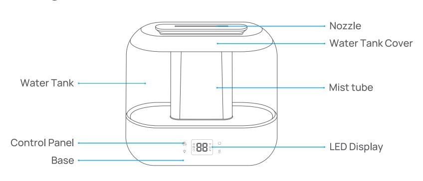 - Do not overfilling the humidifier due to the potential risk of electric shock.