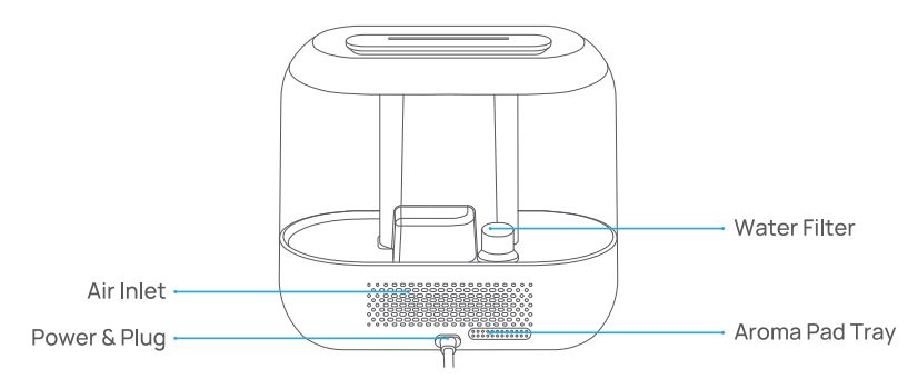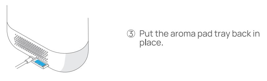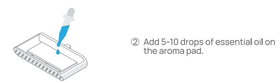 - Add essential oils on the aroma pad only. Do not add into the water tank or any other places.