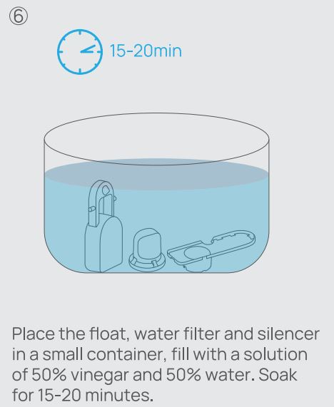 - It is recommended to add purified or distilled water to prevent white powder residue from forming.