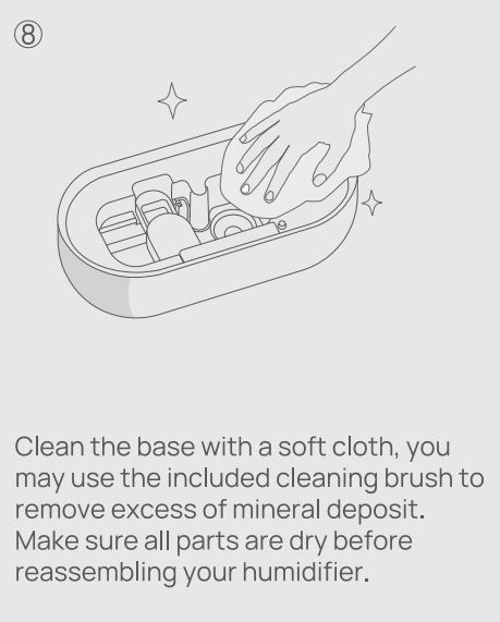 3.Clean the hunidifier and keep it dry for 12hourswith the cover detached.