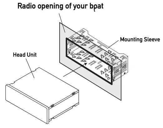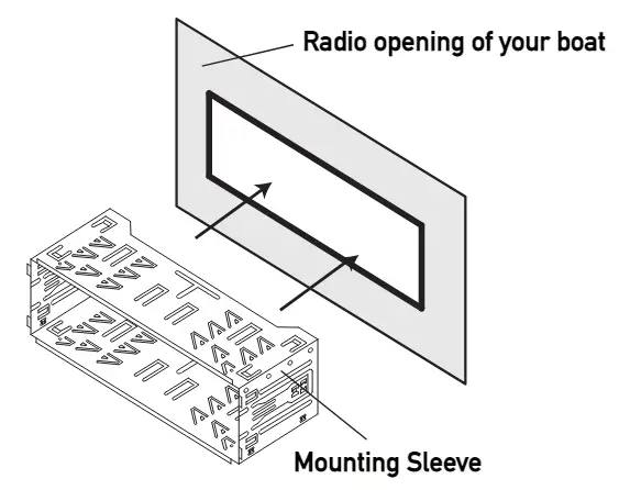 Insert the mounting sleeve into the radio opening of your boat as shown to the right.