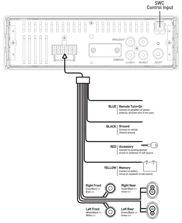 Unit blows fuses | Yellow or red wire touching chassis ground | Check for pinched wire |
