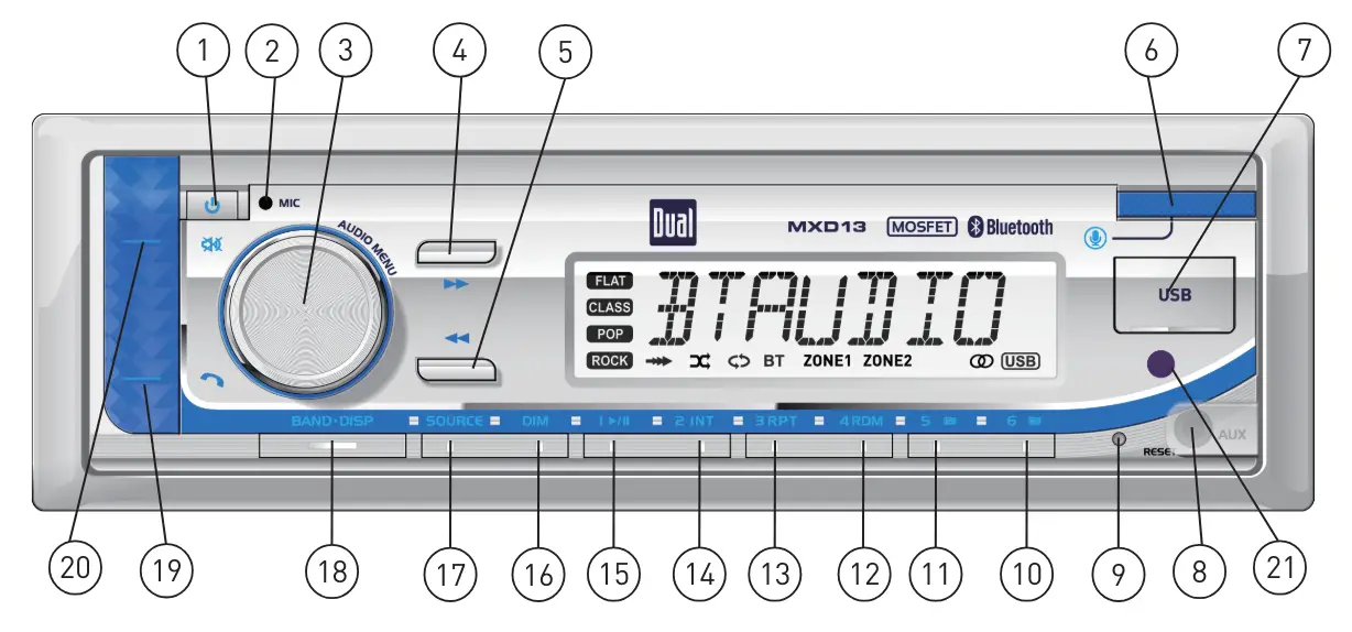 - RPT ALL – Plays all tracks on USB device.
