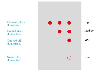 Adjust between 4 precise heat settings using the temperature control button on the back right-hand side of the cylindrical head.